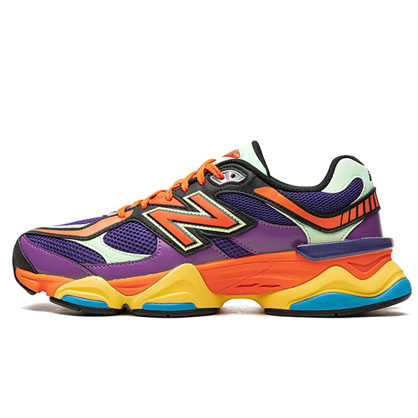 The New Balance 9060 "Prism Purple" is a colorway of the retro-looking lifestyle shoe with a neck-breaking arrangement of colors on its design. Certainly one of the most vibrant colorways of any New Balance shoe, the New Balance 9060 in “Prism Purple” features a purple mesh base with tonal, orange, and mint green leather overlays. An oversized orange “N” logo appears on the side. “NB 9060” branding is seen on the mint green leather tongue. Underfoot, the shoe is complete with an orange, yellow, and blue chunky rubber midsole. Release date: June 20, 2023